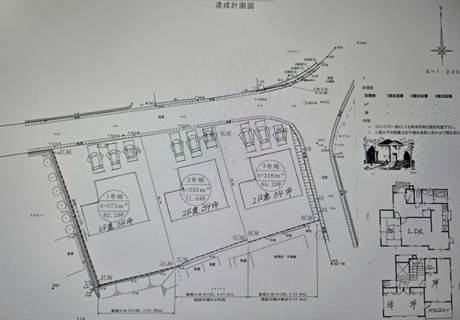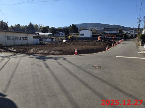 【工事中写真】旧建物解体済み、後は外周CB工事と地盤工事です!! 1月26日工事完成しました! 参考プランと参考配置図※仮想プラン配置図(どの区画も楽々スペースでクルマ3台以上駐車スペースがとれます!)